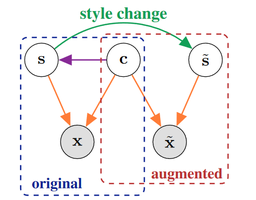 Self-supervised representation learning has shown remarkable success in a number of domains. A common practice is to perform data augmentation via hand-crafted transformations intended to leave the semantics of the data invariant. We seek to understand the empirical success of this approach from a theoretical perspective. We formulate the augmentation process as a latent variable model by postulating a partition of the latent representation into a content component, which is assumed invariant to augmentation, and a style component, which is allowed to change. Unlike prior work on disentanglement and independent component analysis, we allow for both nontrivial statistical and causal dependencies in the latent space. We study the identifiability of the latent representation based on pairs of views of the observations and prove sufficient conditions that allow us to identify the invariant content partition up to an invertible mapping in both generative and discriminative settings. We find numerical simulations with dependent latent variables are consistent with our theory. Lastly, we introduce Causal3DIdent, a dataset of high-dimensional, visually complex images with rich causal dependencies, which we use to study the effect of data augmentations performed in practice.